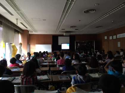 環境事業局の方から、ごみ焼却工場のしくみや3R(リデュース・リユース・リサイクル)について説明を受けています。