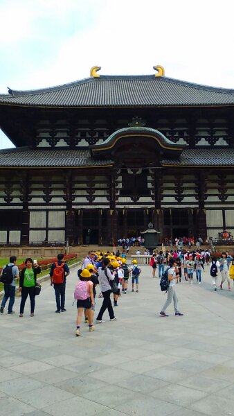 奈良駅からしっかり歩いて、東大寺前に着きました。天気は薄曇り、風は爽やかですが、日差しによっては暑くなります。今から大仏殿です。
