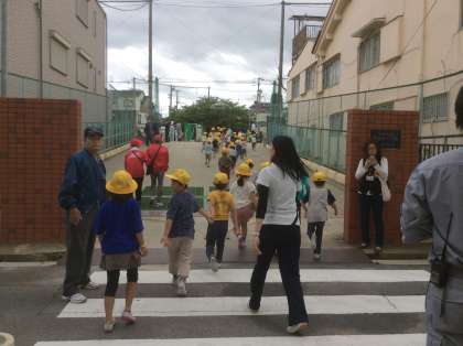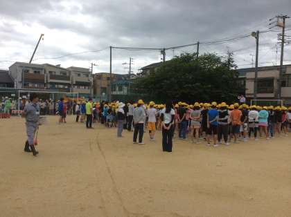 地域での「阿倍野まちなか防災訓練」へ避難訓練として本校児童も参加しました。西運動場への避難は初めてでしたが、「お(おさない)・は(はしらない)・し(しゃべらない)・も(もどらない)」の約束を守ってすみやかに避難をすることができました。