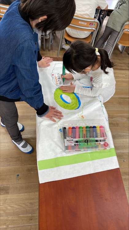 今日は「あべっこ班」活動のスタートの日です。班のめあてを考えたり、班の旗を作ったりしました。