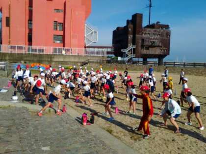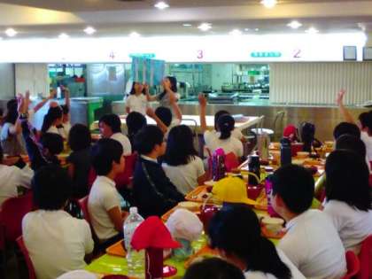いよいよ、2日目の活動が始まりました。朝会をすませ、朝食をとっています。