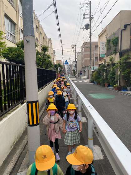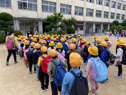 今日は、1年生の小学校初めての遠足です。