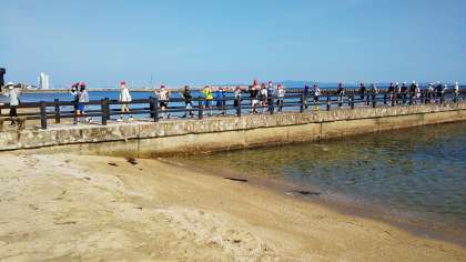 朝の浜辺を散歩