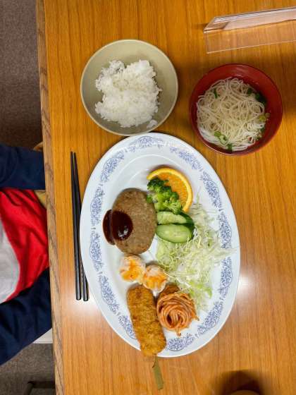 宿舎に戻り、お風呂に入った後は夕食です。 みんなお腹が空いているのか、しっかりと食べています。
