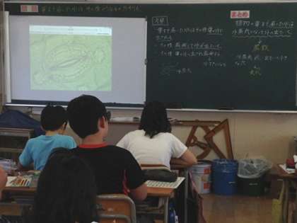 「植物のつくりとはたらき」の単元で、葉まで届いた水がどうなるのかを動画教材を活用して考察しました。