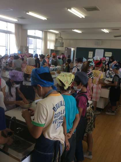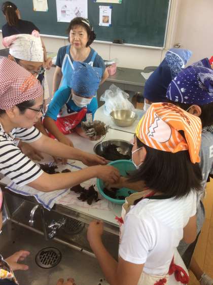 ゲストティーチャーできてくださった地域の方のお話を真剣に聞きながら協力して梅干し作りに取り組んでいました。できあがりがとても楽しみです。
