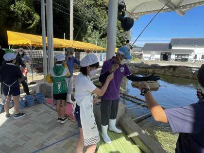 ピクピクと竿の先が動いたら、ゆっくりと引き上げます。