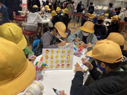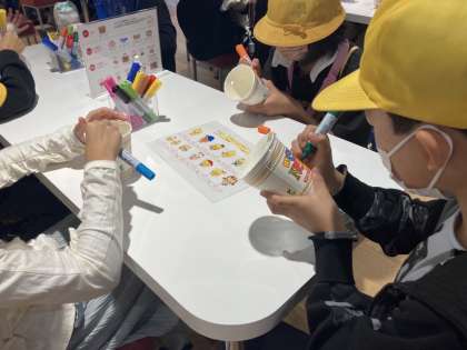 2組は、世界に一つだけのカップヌードルを作成中。