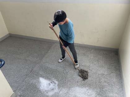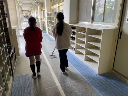 式場となる体育館や廊下、教室などの片づけや掃除を一生懸命行う姿が見られました。