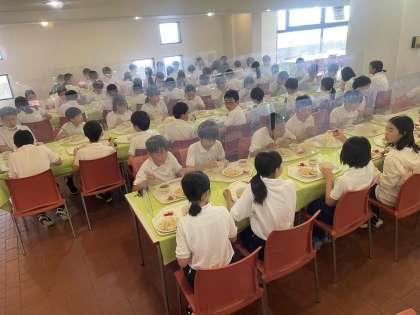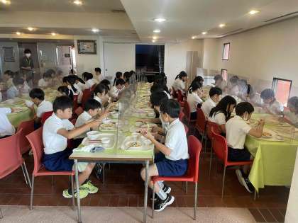 昼食をしっかり食べて、これから1組はカッター体験、2組は浜遊びに出かけます。