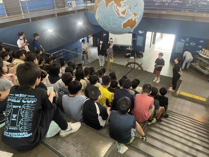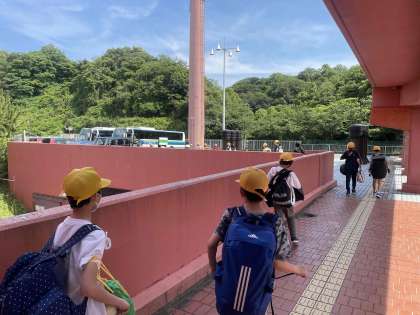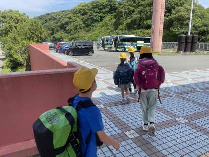 お世話になった海洋センターにお別れを告げ、阿倍野小学校に向けて出発します。
