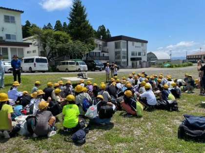 いい天気です。これから3日間お世話になります。みんなで協力して、すばらしい林間学習にしよう。