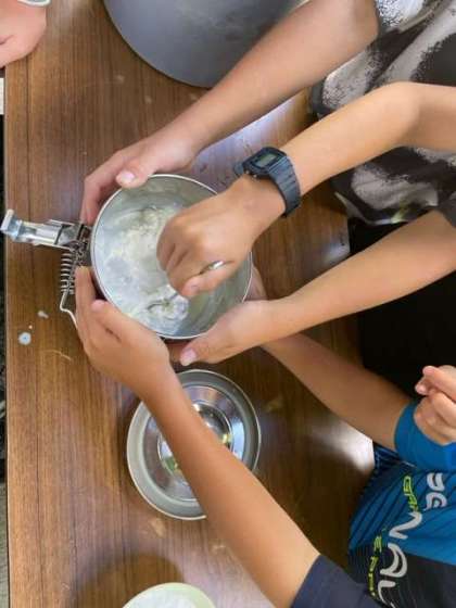 材料を混ぜたり転がしたりグループによって、色々な転がし方をしています。