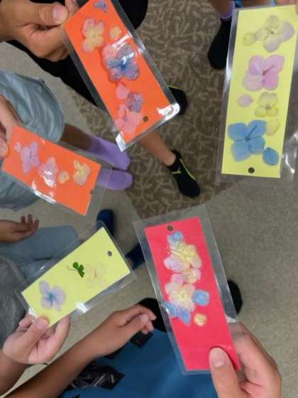 しおり作りをしました。つんだ花と思い出を添えて…