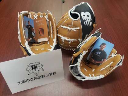 阿倍野小学校にも、アメリカ・メジャーリーグで活躍する大谷翔平選手からグローブが届いています。