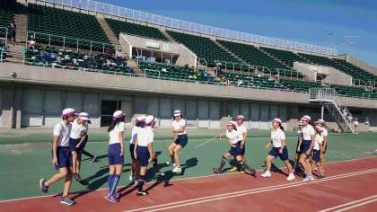 6年生が阿倍野区スポーツ交歓会に参加するため、ヤンマースタジアム長居・ヤンマーフィールド長居に行っています。午前の部はグループに分かれ、ヤンマーフィールド長居(長居第2陸上競技場)でサッカー・ドッジボール・大なわを行っています。