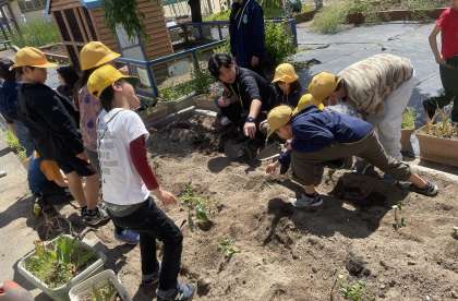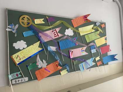 木曜日のチャレンジタイムの時間には、なかよし学級の児童が集まって「なかよしタイム」をしています。5月には、さつまいもの苗を植えたり、こいのぼりを作ったりしていました。