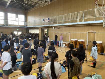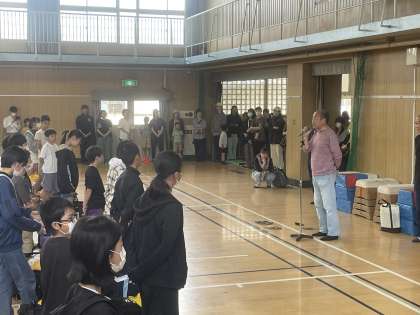 講堂では出発式が行われました。この2日間の活動を通して、仲間との絆を深め、楽しい思い出をたくさんつくってほしいと思います。