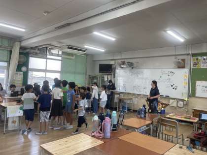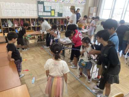 あべっこ班の友だちと仲良く活動する姿が見られました。リーダーの高学年が、メンバーの意見を取り入れながら回る順番を考えたり、楽しくゲームができるようにサポートしたりする姿が印象的でした。