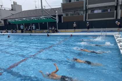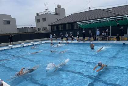 今週はプール開きがありました。少し寒い日もありましたが、プールから子ども達の元気な声が響いてきました。早速6年生は現在の泳力を確かめるために記録をとっていました。