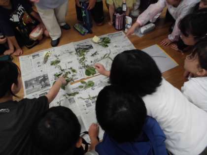 大阪市環境局の皆さんを講師に迎え、阿倍野小学校の生き物図鑑をつくりました。映像や講師の方々が採取した学校のまわりに生息している生き物をもとに、生物多様性の意義や自分の身近な場所で様々な生き物たちが生息・生育していることを知りました。子どものつぶやきにも、適格な返答をしていただき知識の豊富な講師の方ばかりで子どもにとって密の濃い学習となりました。