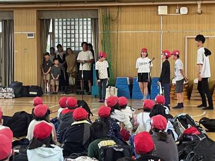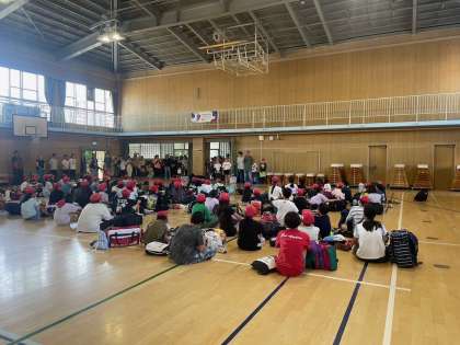 講堂で帰校式を行いました。おむかえにきてくださった保護者の皆さんや先生方に林間で楽しかったこと学んだことなどを代表児童があいさつしました。