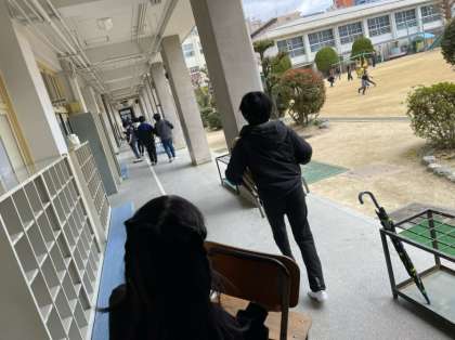 4月から阿倍野小学校に入学する1年生のために、6年生が教室やろう下を掃除をしたり、会場の椅子を準備したりとがんばっていました。また、2年生が「お迎えの演技」の練習をしていました。春休みに寂しかった小学校の講堂に、元気な校歌の歌声が響き渡りました。