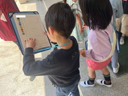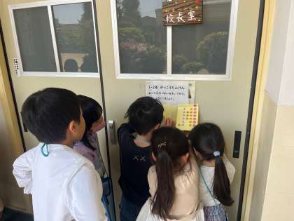 2年生の上手な説明を一生懸命聞いて、興味深そうにお部屋を観察する姿が印象的でした。説明を聞いた後はシールを貼りました。たくさんのシールを集めながら、とても楽しそうに活動を行うことができました。