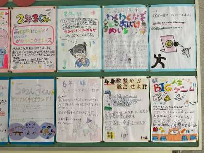 13日(金)のあべっこカーニバルに向けて、お店づくりをがんばっています。1階の掲示板に貼られたお店紹介のポスターから、どのお店も楽しそうな雰囲気が伝わってきました。