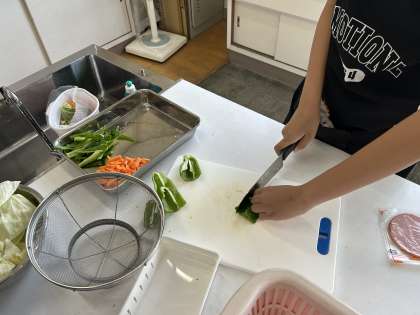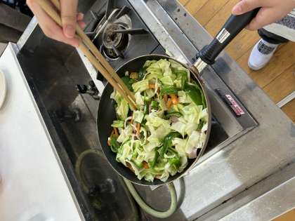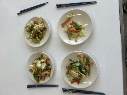 家庭科の授業の一環で『ハム入り野菜炒め』を作りました。