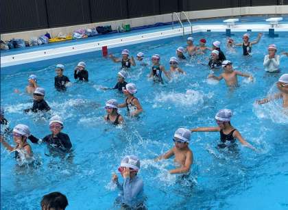 最後にはみんなで宝探しを行いました。苦手な児童も頑張ってとろうとする姿が見られてとても良かったです。来年までプールの学習はありませんが、これからも頑張って、たくさん泳げるように成長してほしいです。