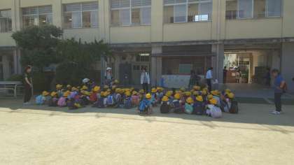 学校に帰ってきました。たくさん遊んで、とても楽しかった遠足でした。小学校に入って初めての遠足でした。