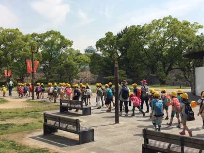 まだまだ遠いですが大阪城が見えました。これから西の丸庭園を目指します。