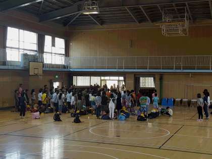 いよいよ自然体験学習。楽しみにしていた3日間のスタートです。出発式を終え、みんな元気に出発しました。