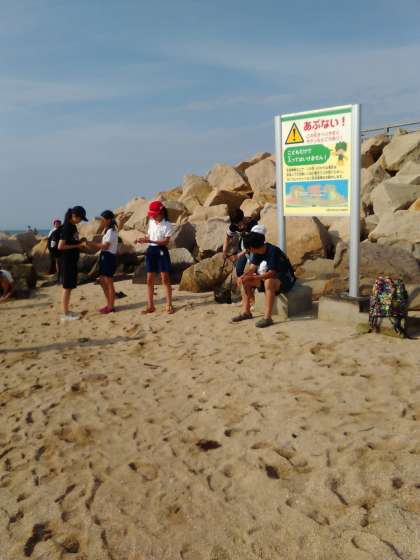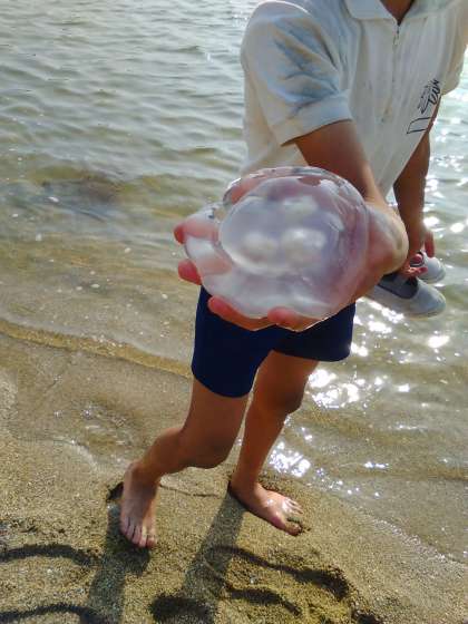 カレーづくりもおわり、磯遊びです。みんなくらげに夢中です。