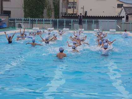 いよいよ待ちに待ったプール水泳が始まりました。曇り空のため少し肌寒い時もありましたが、今年初めてのプールはとても気持ちよさそうでした。水にもぐったり、浮いたり、泳いだり。去年できなかったことにチャレンジしたり、さらに良い記録を目指したり…。子どもたちのワクワクをプールも待っているようでした。