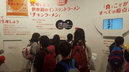 インスタントラーメンの歴史を、展示やクイズで調べることができました。