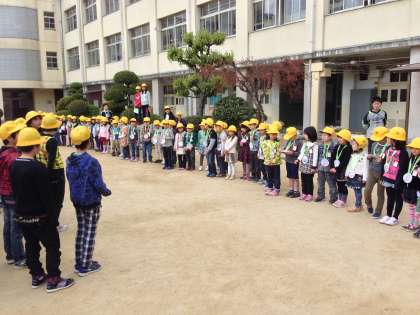 今年度はじめて、阿倍野所小全校児童が運動場に集まりました。