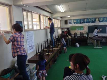 今年度第1回目の土曜授業5月25日に行われました。3時間目はたてわり班で校内の掃除をしました。120名をこえる保護者の方もご協力してくださいました。子どもたちだけでは掃除ができない場所を熱心に掃除をしていただきました。学校がとてもきれいになりました。