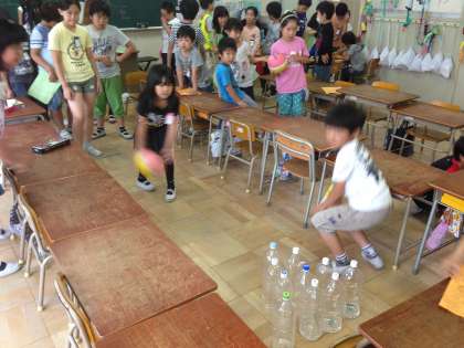 代表委員会が中心となり、たてわり班ごとにコーナーを準備し、室内オリンピックを行いました。学年の枠をこえて、協力してコーナーを運営したり、競技したりしました。