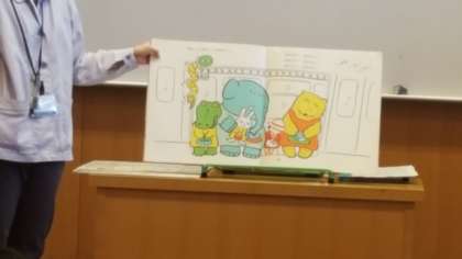 絵本の読み聞かせをしてもらいました。質問コーナーでは、たくさんの質問に答えてもらいました。
