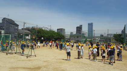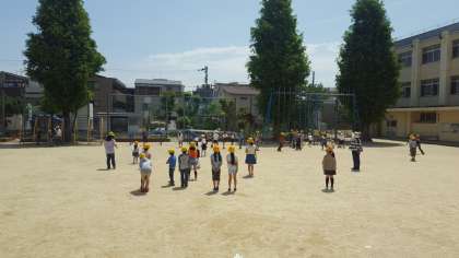 今週は「あべっこスマイル週間」です。あべっこ班に分かれ、いろんな遊びをして楽しみました。とてもいい天気で、運動場にみんなの元気な声が響いていました。