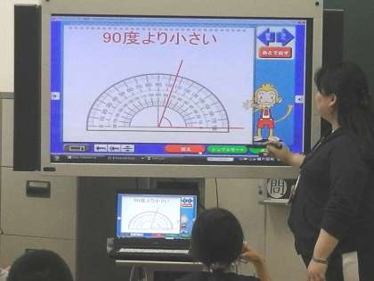 デジタル教材で、分度器の使い方、フラッシュカードで、角度の学習をしました。