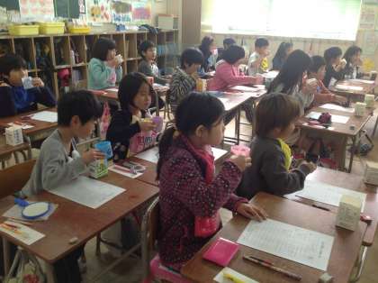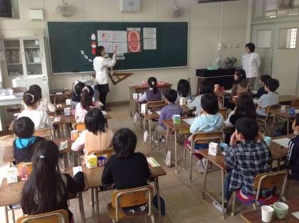 2月26日(木)、歯科衛生士さん2名が来校し、2年生の子どもたちに、歯磨き指導を行いました。