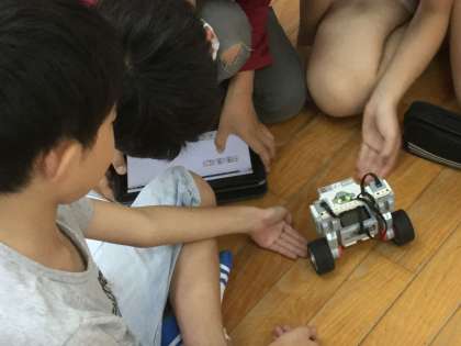 そんな中、本校でもプログラミング学習がスタートしました。タブレットからのプログラムの命令を受けて、動くロボット。基本的な命令を学び、ロボットを動かします。今日はウォーミングアップ。思考力・判断力をフルに生かして、これからさまざまな課題にチャレンジします。