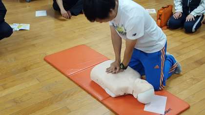 阿倍野小学校では、毎年職員向けの救急救命講習を行っています。今年度も阿倍野消防署の消防隊・救急隊の方々に来ていただき講習を受けました。