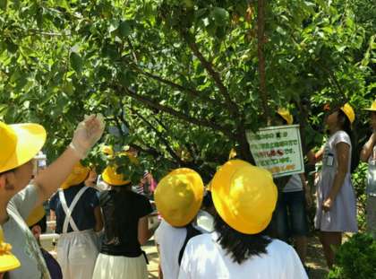 今日は、毎年梅干し作りを教えてくださる地域の方と一緒に、梅の収穫を行いました。