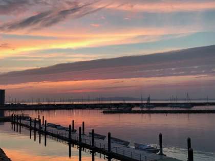 「日本の夕陽百選」にも選ばれている淡輪の夕焼け空を見ることができました。いよいよナイトハイクがスタートしました。