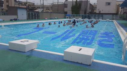 いよいよ待ちに待ったプール開きです。お天気が心配されましたが、予定通りプールに入ることができました。今日は2・3・5年生のプール開きです。