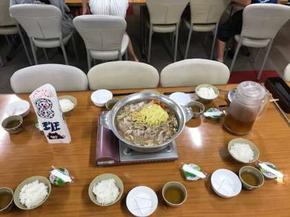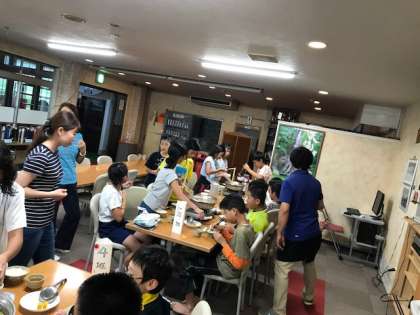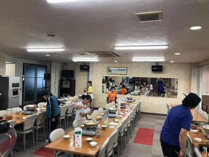 今日の夕食は、かも鍋です。食事係が用意をしました。活動の疲れも忘れて楽しく食べています。